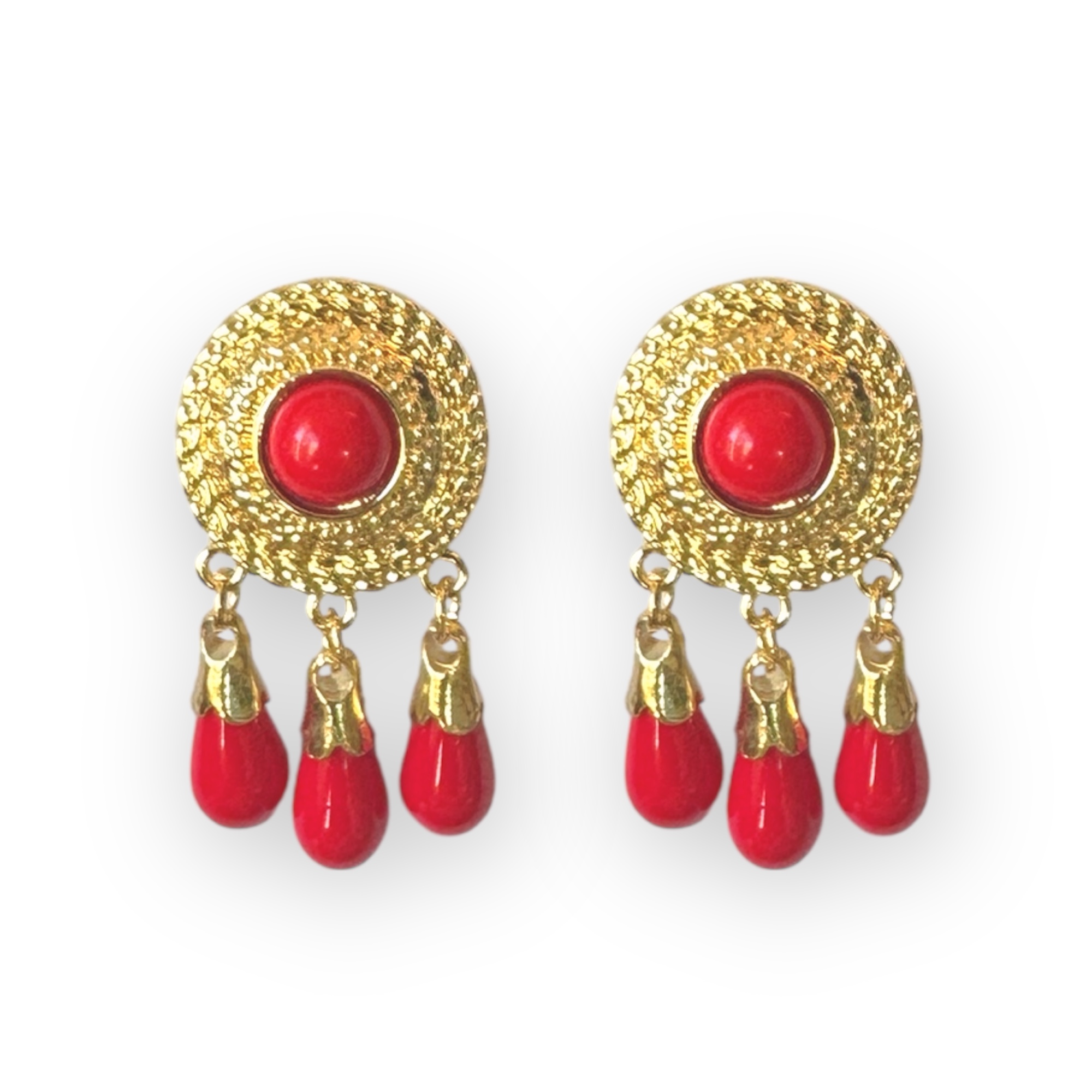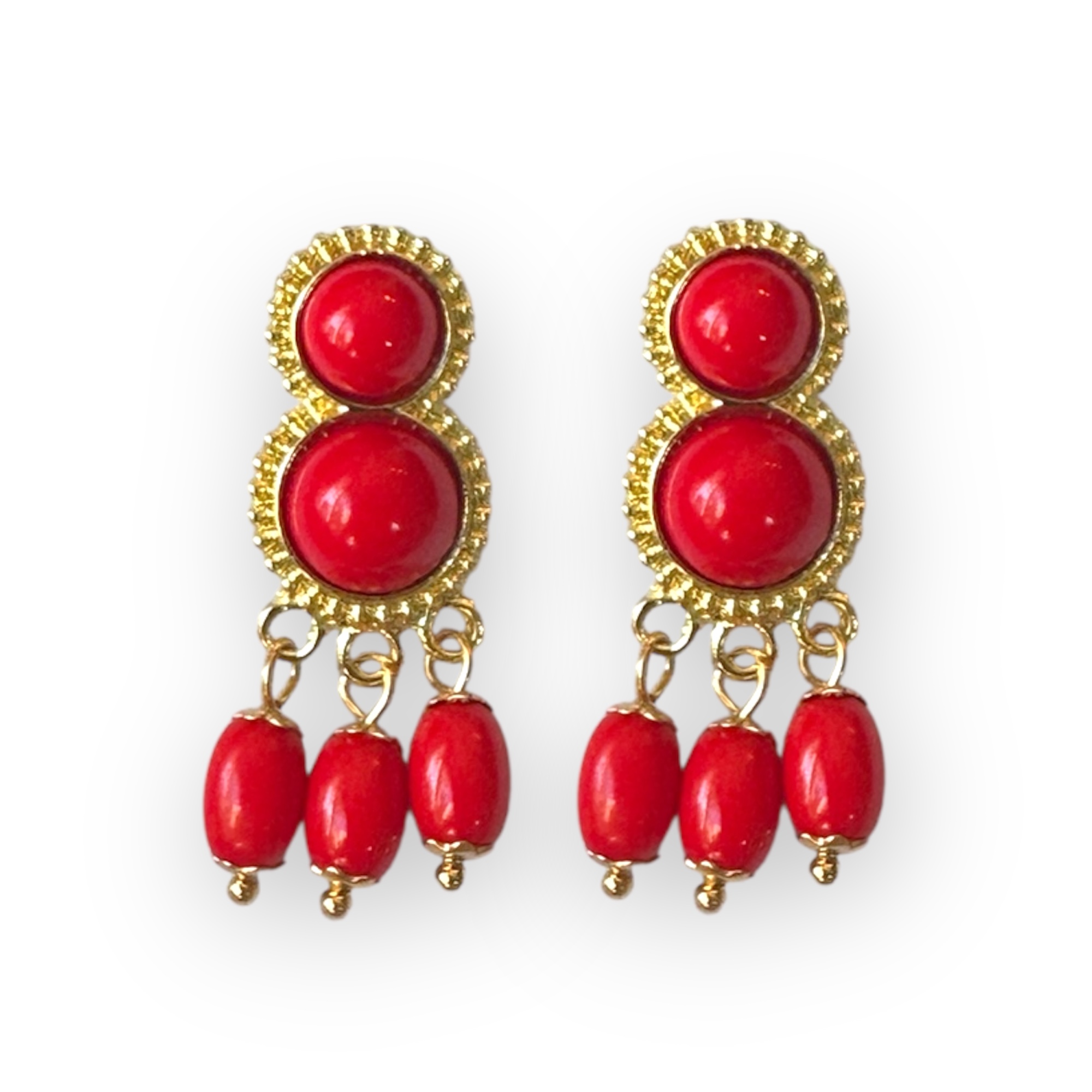 Pendientes doble camafeo mini rojo